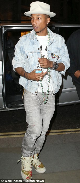 One of Pharrell’s most charming hat moments came with his powder-blue bowler hat, paired with a light jacket and a pared-back ensemble. The blue added a soft pop of color while the clean silhouette kept the look elegant. It was playful without being loud — classic Pharrell territory. Image source